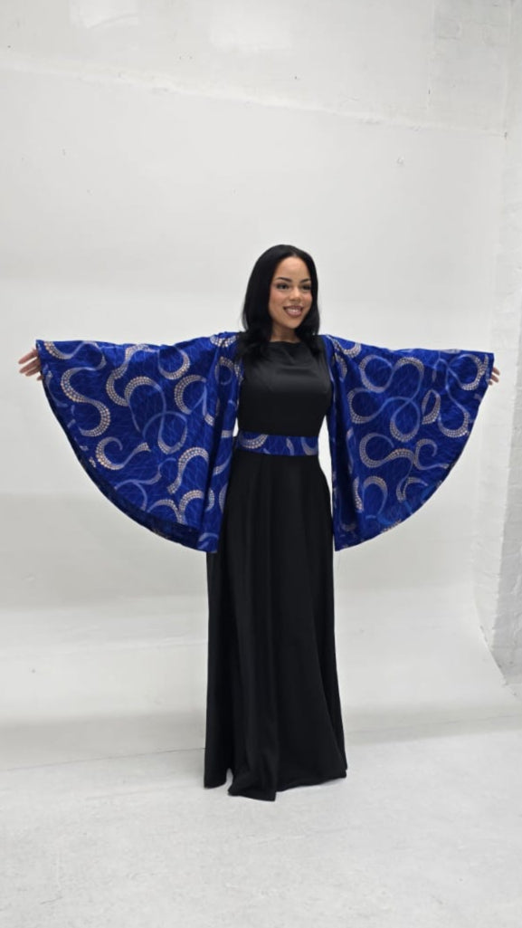 Elevate your date night with this elegant Black & Blue Dress featuring extra-wide sleeves and convenient pockets. Its fit-and-flare silhouette flatters modestly while enhancing your natural shape, combining style and sophistication effortlessly. Perfect for making a refined statement with comfort and grace.