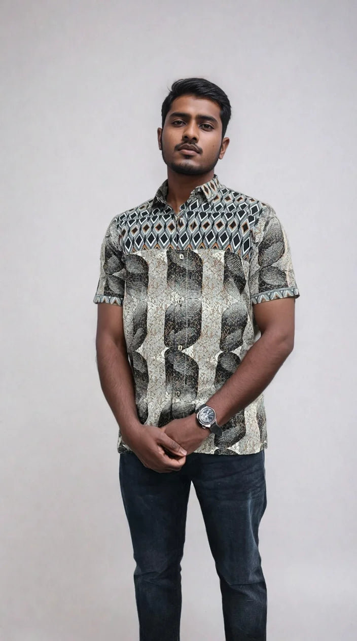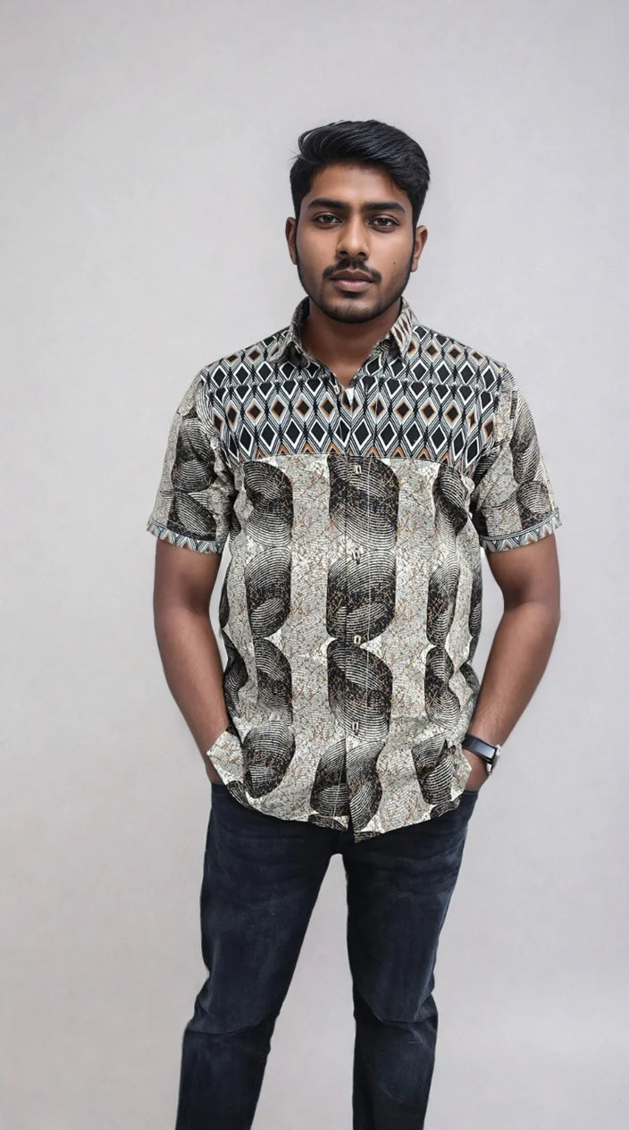 Get ready to rock the holidays with this stylish Black & Grey Short Sleeve Men's Shirt. Crafted with soft and unique fabric, this button down shirt is perfect for any occasion. Embrace the semi-casual look and stand out in the crowd with this gorgeous and comfortable shirt!