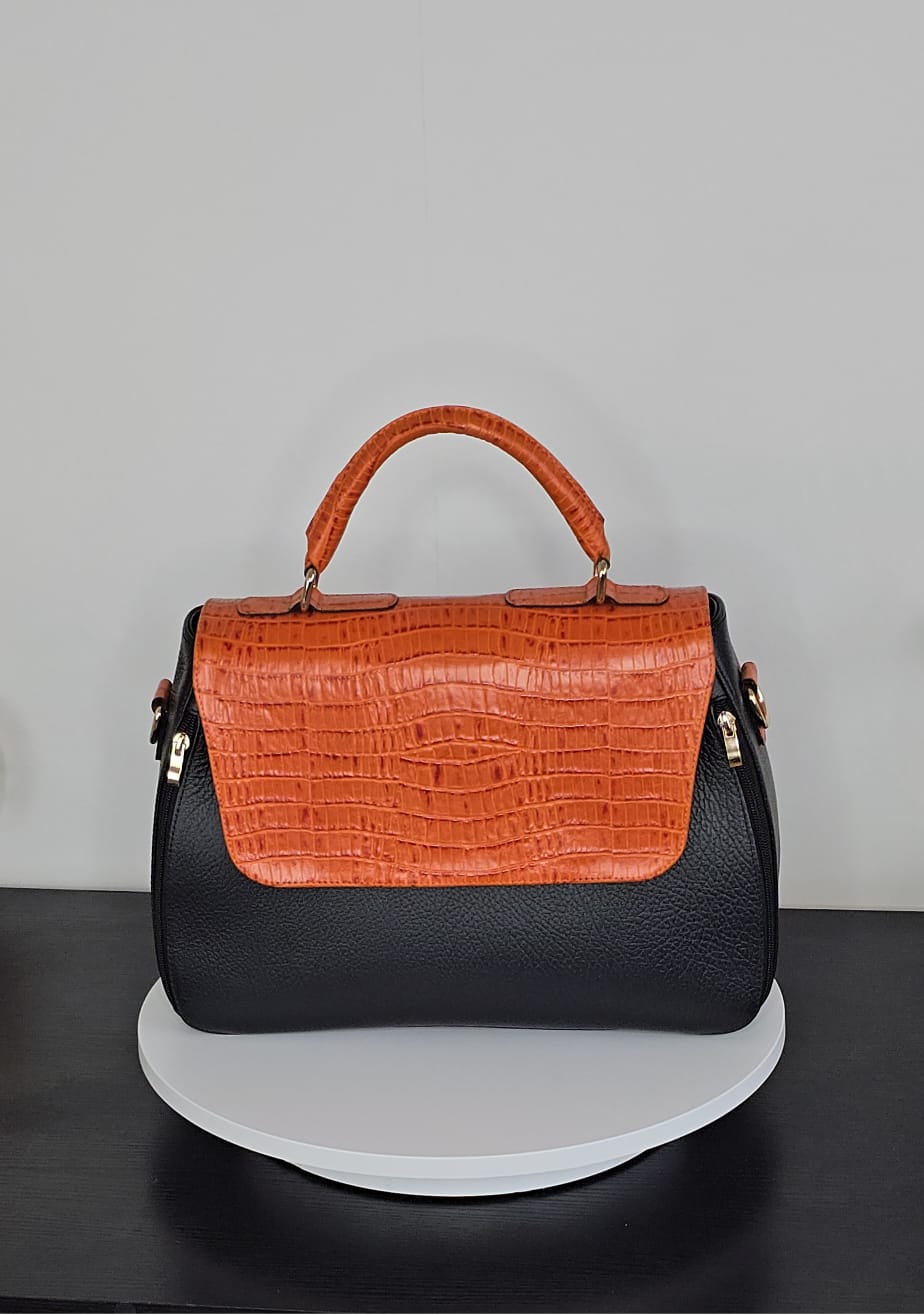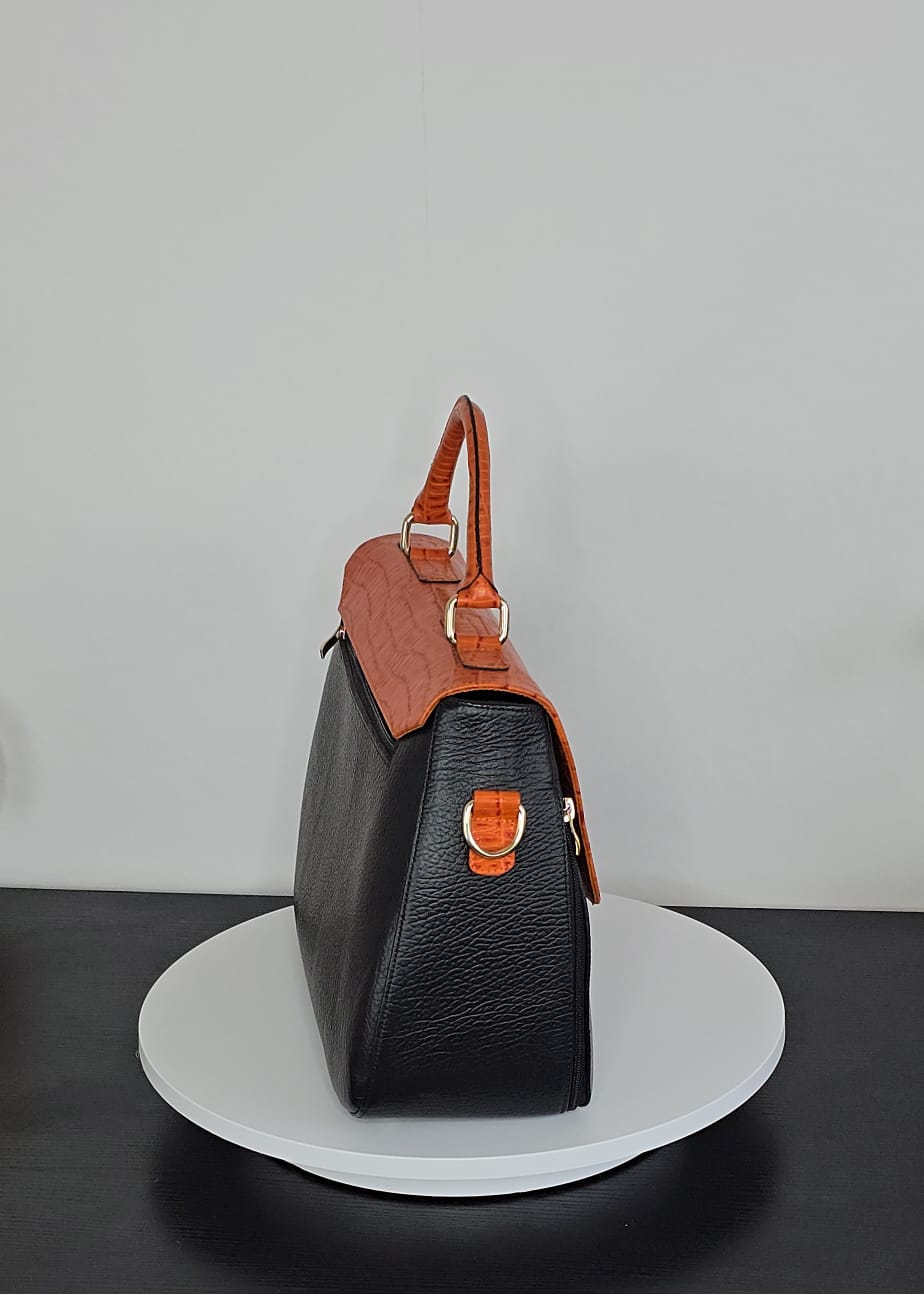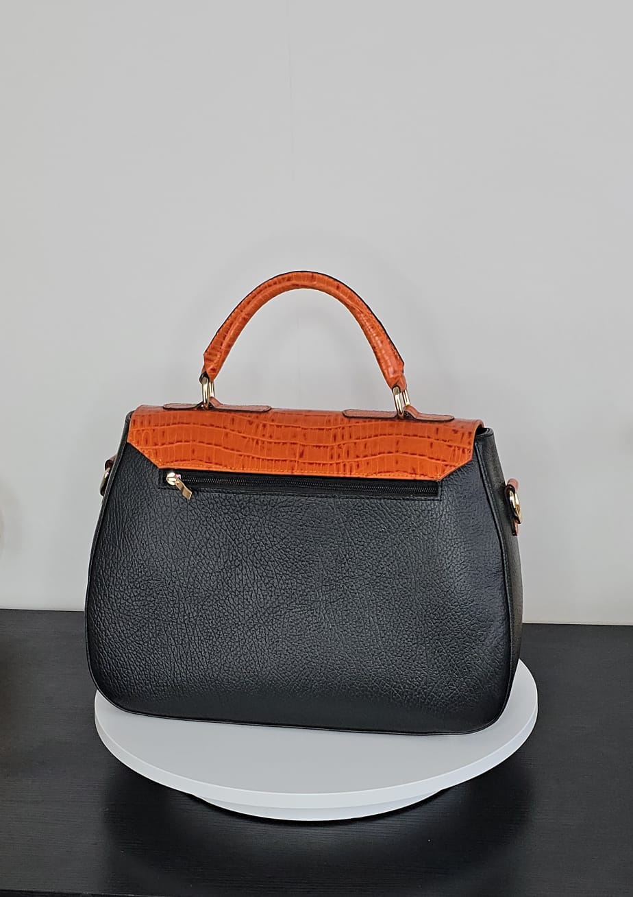 Unleash your inner boss with our limited edition Black & Orange Boss Lady Handbag. Crafted from genuine leather sourced from West Africa, this handbag exudes sophistication, affluence, and elegance. The black body and orange flap make a bold statement, perfect for the confident woman who knows what she wants. Elevate your style and feel like a true boss with our luxurious handbag.
