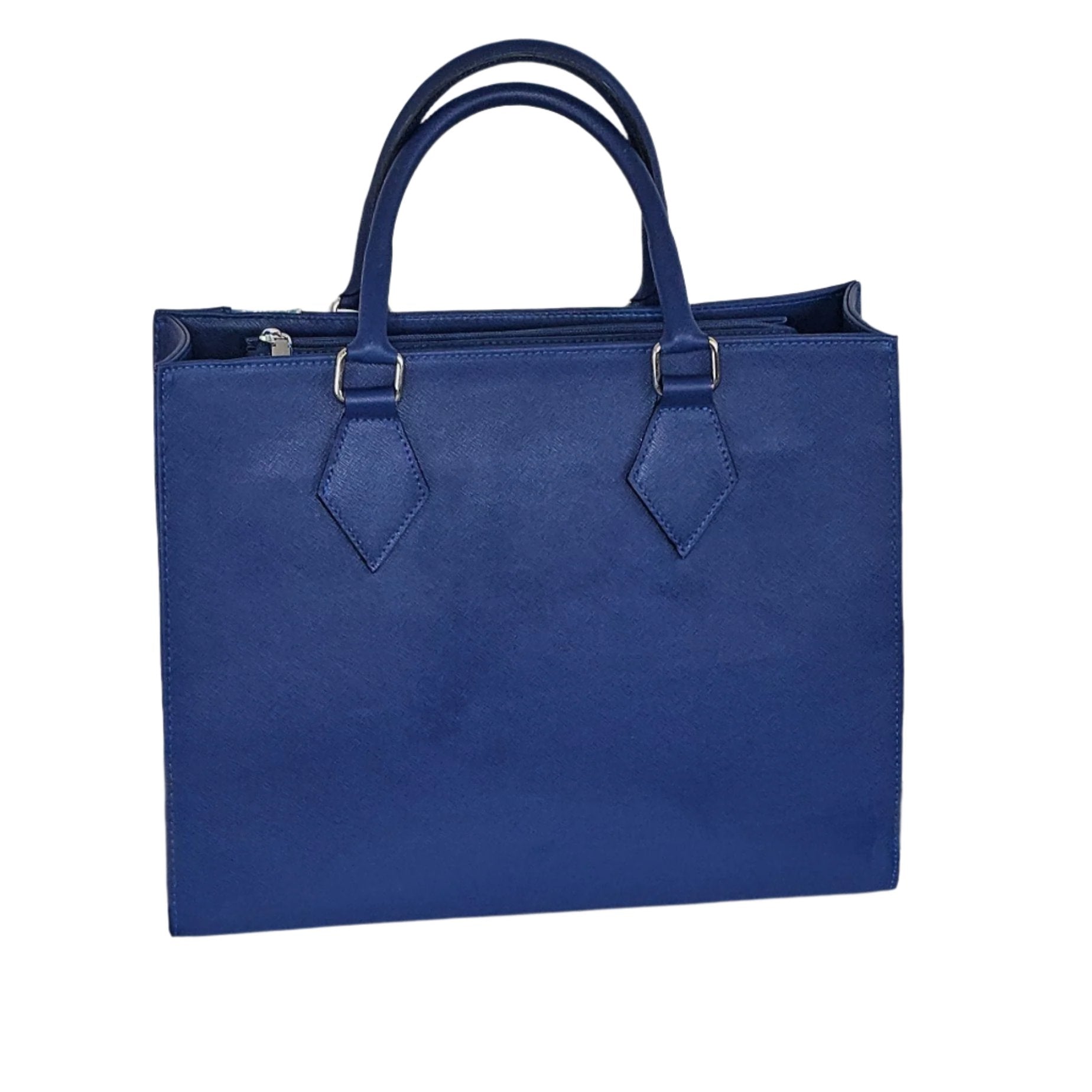 Unleash your powerful side with our Blue Leather Tote Back with Floral Strap. Crafted from leather sourced from West Africa, this handbag exudes sophistication, affluence, and elegance. The black body and orange flap make a bold statement, perfect for the confident woman who knows what she wants. Elevate your style and feel like a true boss with our luxurious handbag.