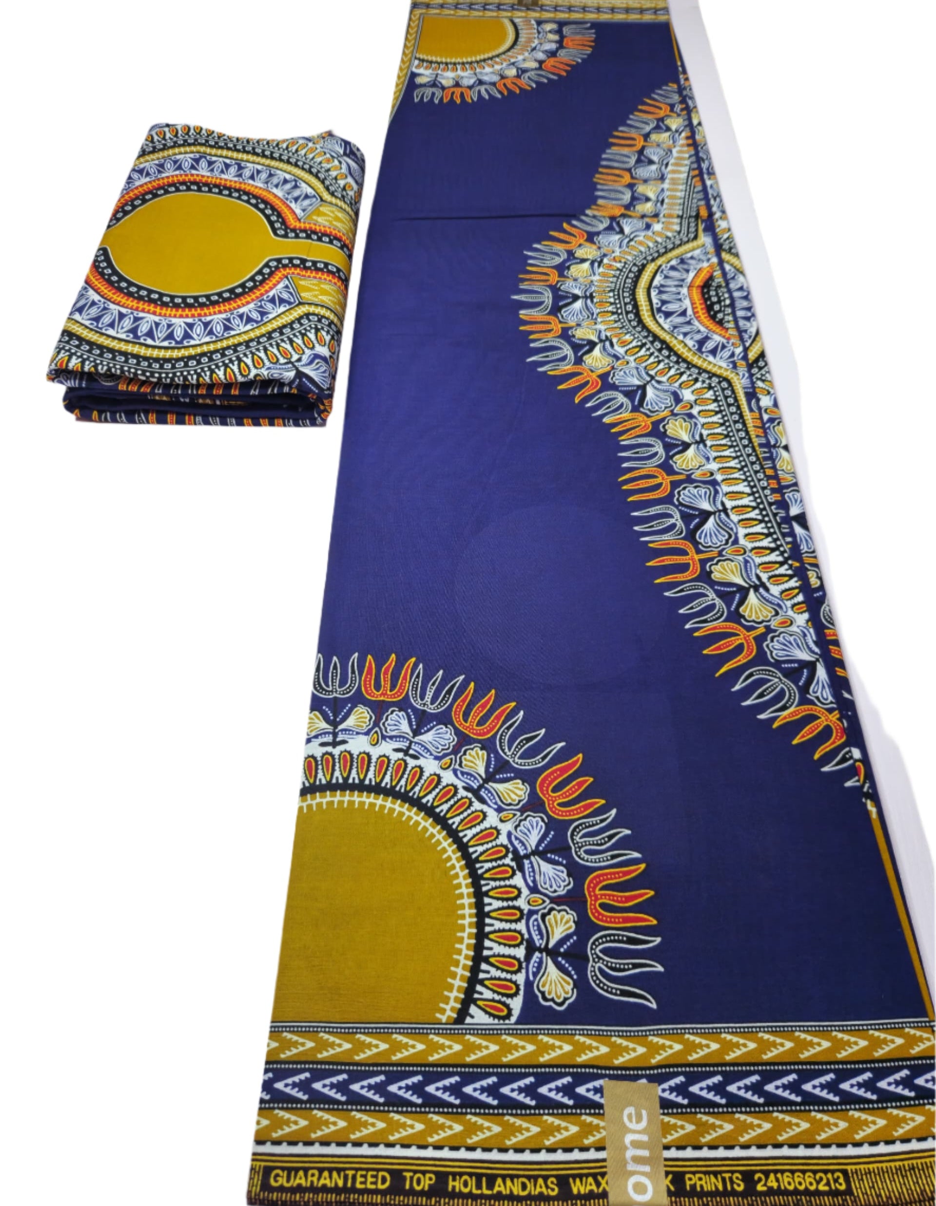 Add a pop of colour to your wardrobe with our Blue & Gold Dashiki African Print fabric! Made with 100% machine washable cotton, this unique fabric is perfect for creating vibrant and colourful outfits. Stand out from the crowd with this stylish and eye-catching fabric!