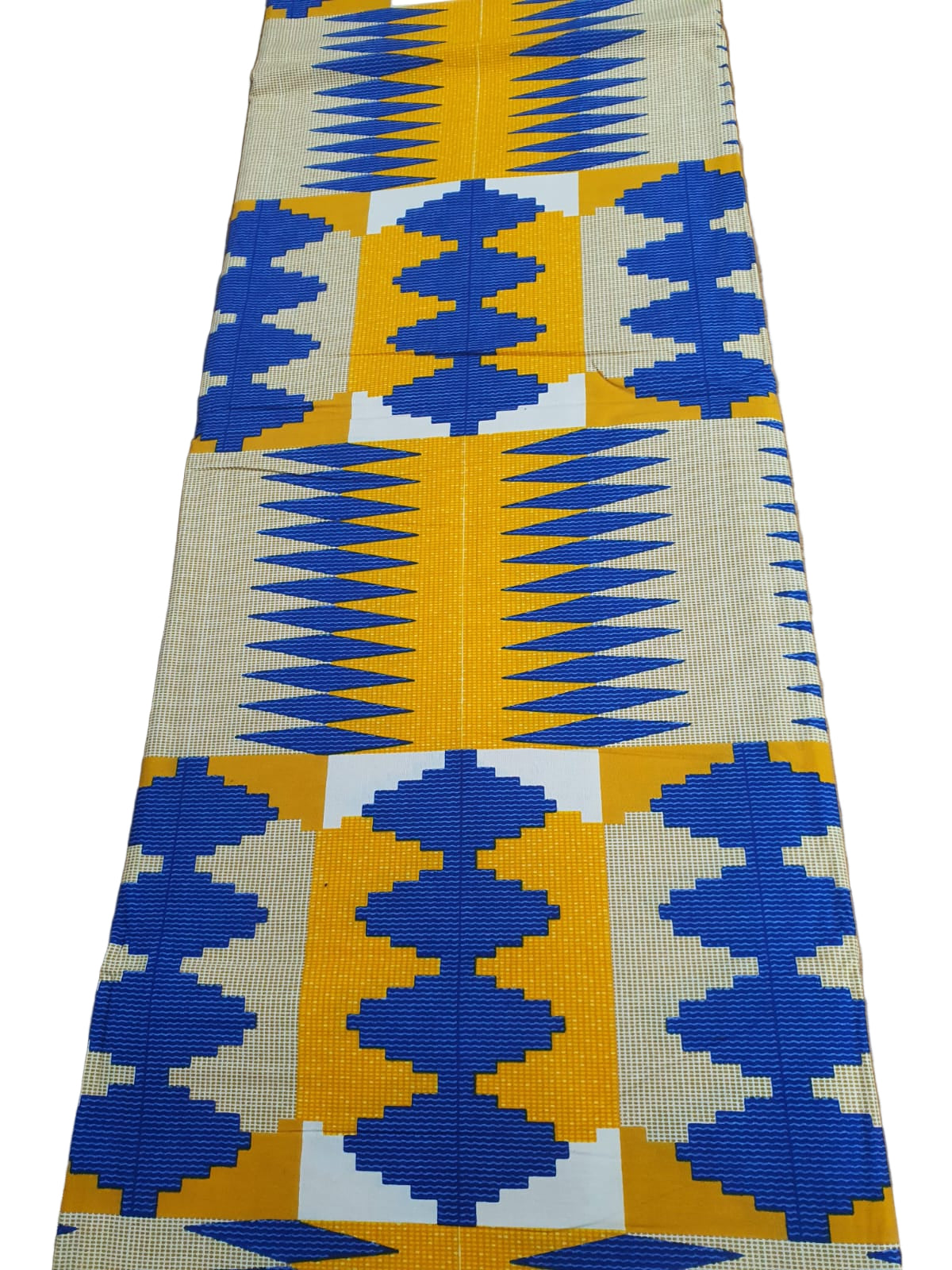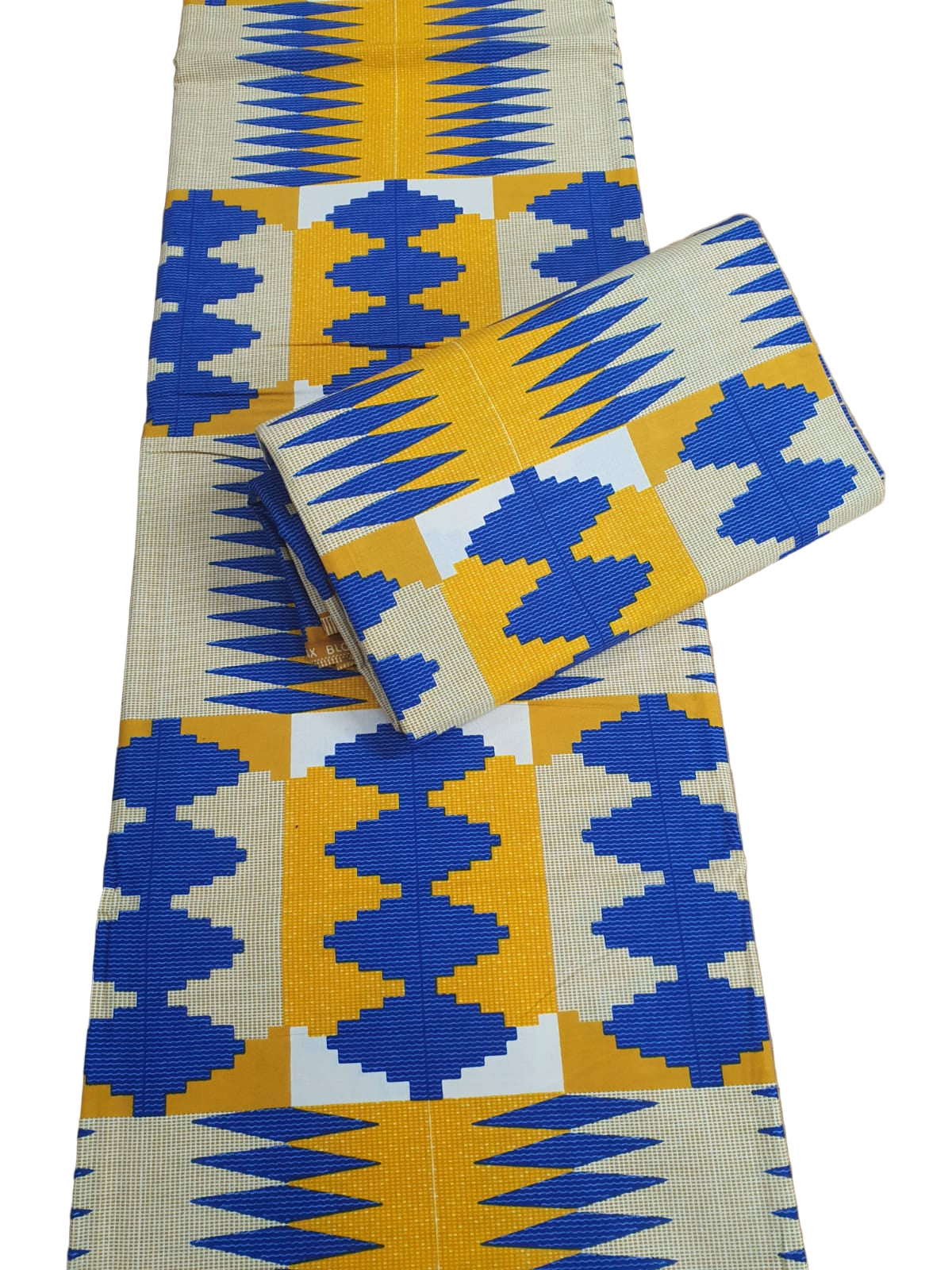 Brighten your wardrobe with our 100% cotton Gold, Cream & Blue Tribal Pattern Ankara Fabric. This playful, unisex fabric is bursting with bold colours that effortlessly lift any outfit. Machine washable and perfect for any style or occasion, it’s a vibrant essential for those who love to stand out and express their unique flair.