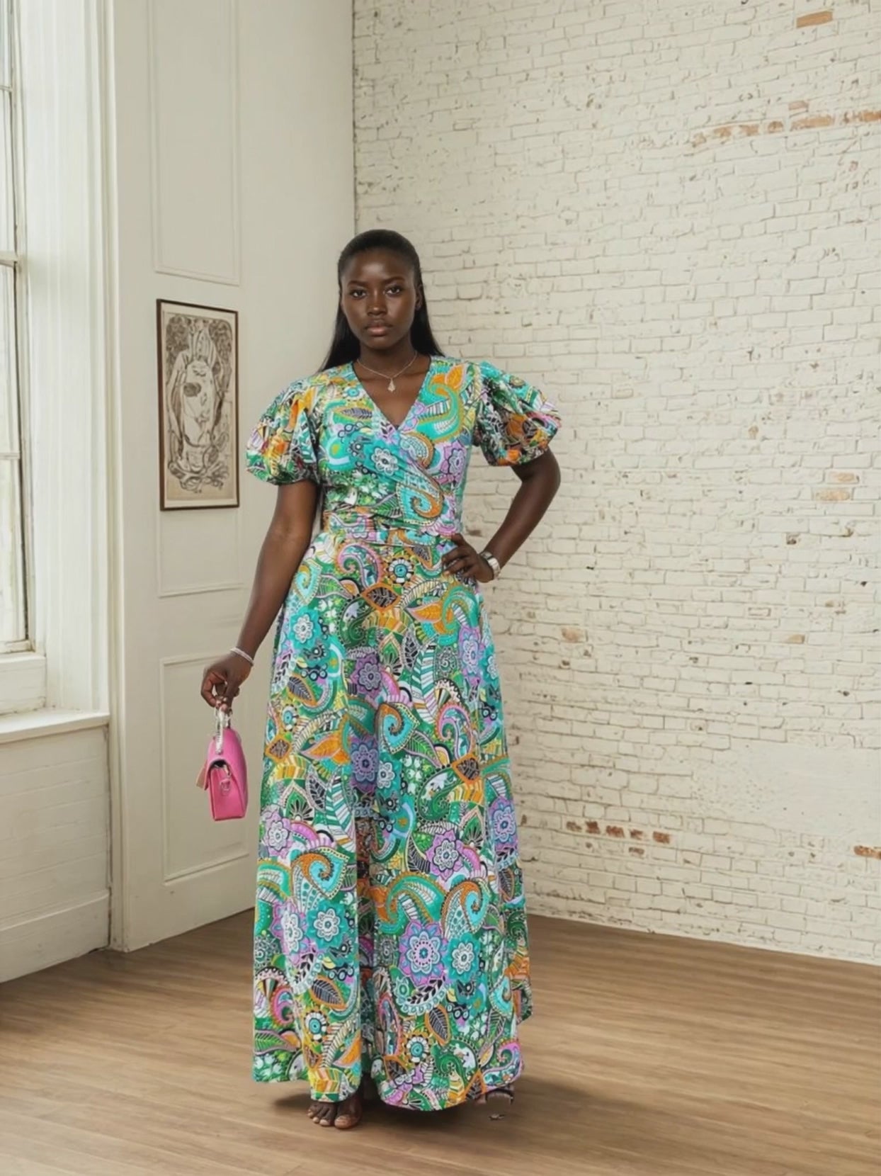 Indulge in the luxurious elegance of our Paisley Mock Wrap Dress. Made with 100% cotton, this chic dress is perfect for any outing. Its modest yet sophisticated design makes it a must-have in your wardrobe. Pair it with accessories as desired for a truly exclusive look.