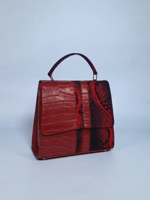 This elegant Red Ladies Leather Handbag exudes sophistication with its Red and black Ankara fabric. Crafted with care using premium raw materials sourced from West Africa, this piece embodies both artistry and cultural heritage. Its sturdy Ankara handles offer both comfort and contrast making it exquisite combination . Ideal as a thoughtful gift or a luxurious treat for oneself, this handbag seamlessly blends fashion with cultural pride.