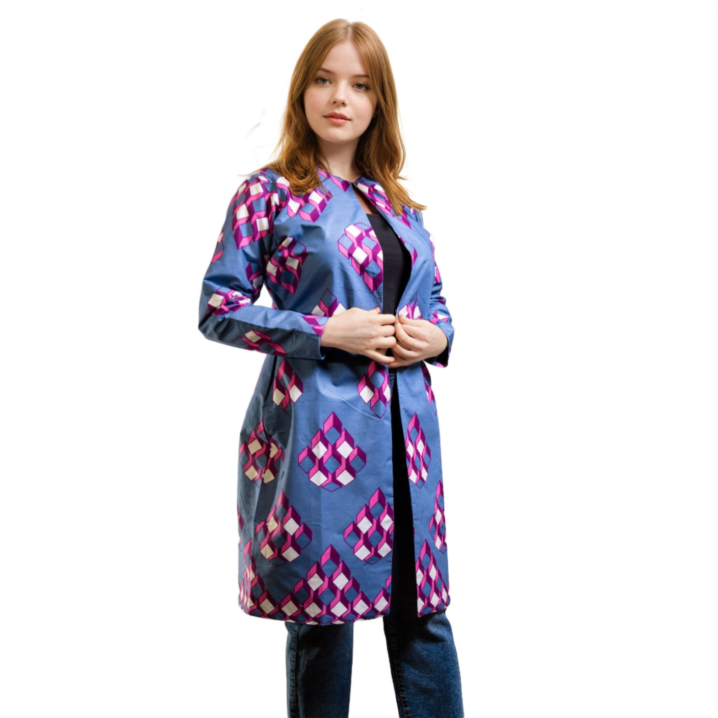 Indulge in luxury with our Lilac Ankara Kimono Jacket. Made from 100% cotton Ankara fabric, this fully lined jacket exudes sophistication. Its kimono style and long sleeves add a touch of elegance, while the hook and eye fastening ensures a flawless fit. Elevate your wardrobe with this long jacket style.