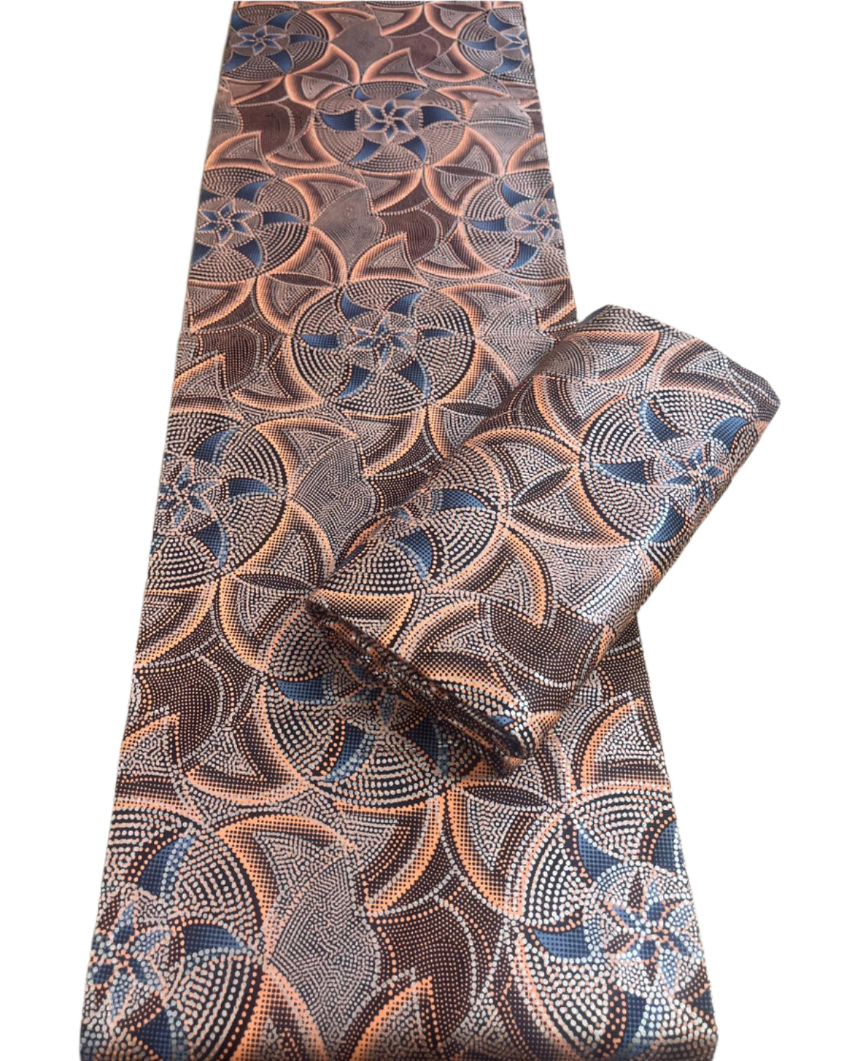 Unleash your fashion superpowers with our Peach, Brown, & Grey Embellished Sliver Ankara Fabric! This fabulous textile doesn't just make clothes—it makes memories! The shimmering sliver embellishments dance across patterns, creating a party wherever you go. Made from 100% cotton that loves your skin as much as you'll love wearing it. Totally unisex because awesome style doesn't discriminate! Pop it in the washing machine when life happens.