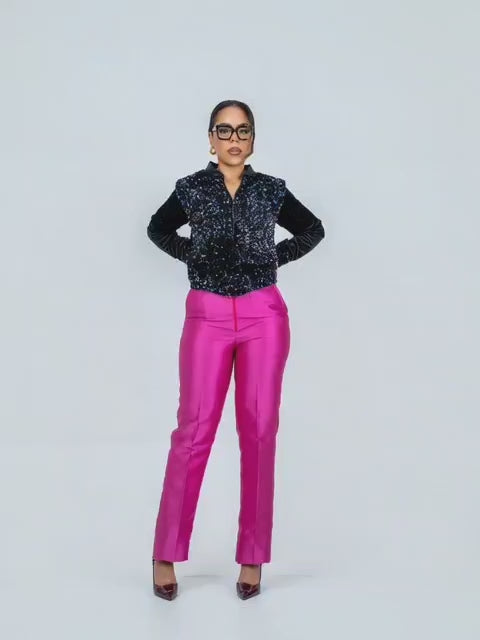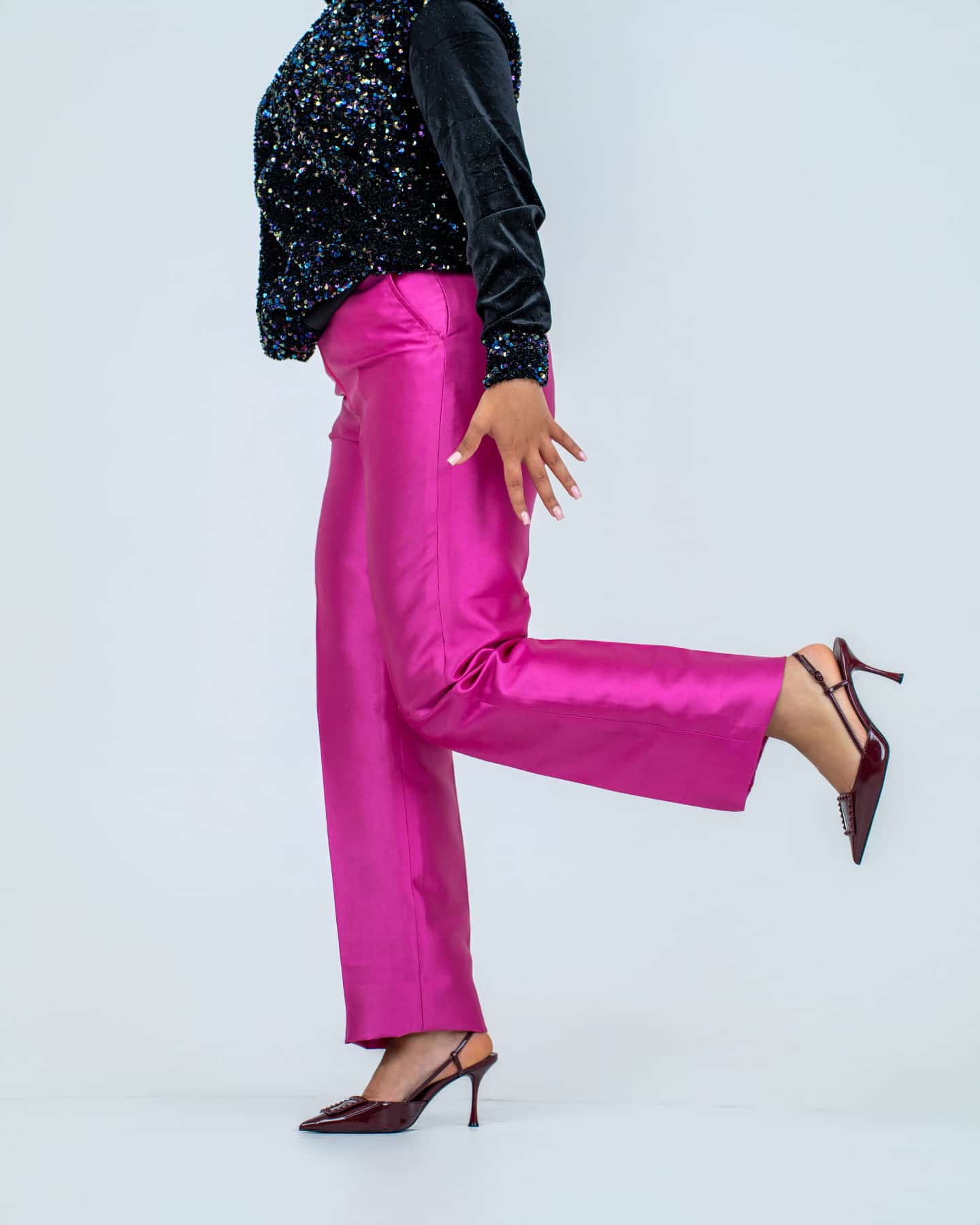 These Pink Mikado Ladies Trousers offer a tailored fit designed to flatter your shape comfortably. The unhemmed finish adds a relaxed touch, while the front zip allows easy wear. With pockets on both sides, they provide practical convenience to support your busy day with style and ease.