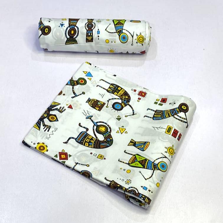Get crafty with the White Human Dancing Tribal Ankara Fabric! This 100% cotton fabric features colorful animations of humans dancing, making it perfect for any sewing project. With its versatility, it's ideal for all types of crafts. Get creative and let your projects dance with this quirky and fun fabric.
